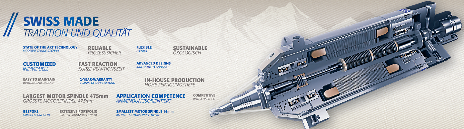 瑞士IBAG電主軸公司 成立于1941年2月,并于1960年開始研發(fā)電主軸。到目前,瑞士IBAG電主軸已成為業(yè)界影響深遠、廣為推崇的電主軸品牌。作為最早進入中國市場的電主軸品牌,憑借優(yōu)良的品質(zhì)、優(yōu)美的外觀,簡潔可靠的結(jié)構(gòu)設計,IBAG電主軸不僅為中國高端制造提供了高端電主軸選擇,同時也為國內(nèi)電主軸生產(chǎn)企業(yè)起到了模范作用,促進了國內(nèi)電主軸行業(yè)最初的發(fā)展。瑞士IBAG電主軸公司多年僅聚焦于電主軸的研發(fā)和生產(chǎn),電主軸產(chǎn)品應用領域廣泛,如微孔加工、精密雕刻、鏡面加工、鉆攻、各式加工中心、雙軸擺頭等,瑞士IBAG電...